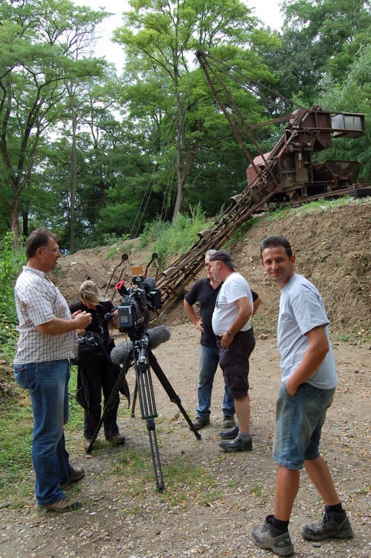 Der Südwestfunk (SWR) führte auf unserem Vereinsgelände im Juli Dreharbeiten für die Sendung "Eisenbahn-Romantik" durch. Hier soll es voraussichtlich Sommer 2014 eine Sondersendung zu Feldbahnen in Baden-Württemberg geben. Die SWR-Kollegen waren insbesondere an unserem seltenen Eimerkettenbagger interessiert. Um den Bagger in voller Aktion zu zeigen, installierten sie sogar eine Minikamera in einer der Baggerschaufeln.