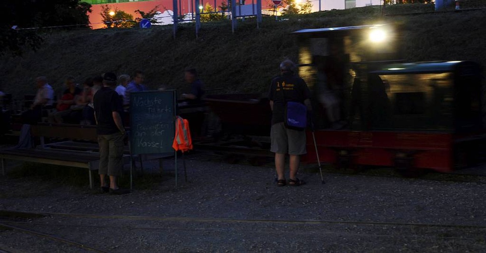 Die Sommernachtsfahrt hatte dieses Jahr Premiere. Vor den Sommerferien boten wir unseren Besuchern noch einmal die Gelegenheit, bei allerbestem Wetter einen schönen Abend bei uns zu verbringen. Nachdem die sommerliche Hitze des Tages einem lauen Sommerabend gewichen war, wurden der Grill und die Feldbahnmotoren angeworfen. Kurz vor Sonnenuntergang illuminierten wir das Gelände und insbesondere unseren historischen Lokschuppen stimmungsvoll. Vor allem die Begehung (Bergleute sagen "Befahrung") unseres Bergstollens bei Dunkelheit mit historischen Grubenlampen fand bei den Besuchern regen Anklang.