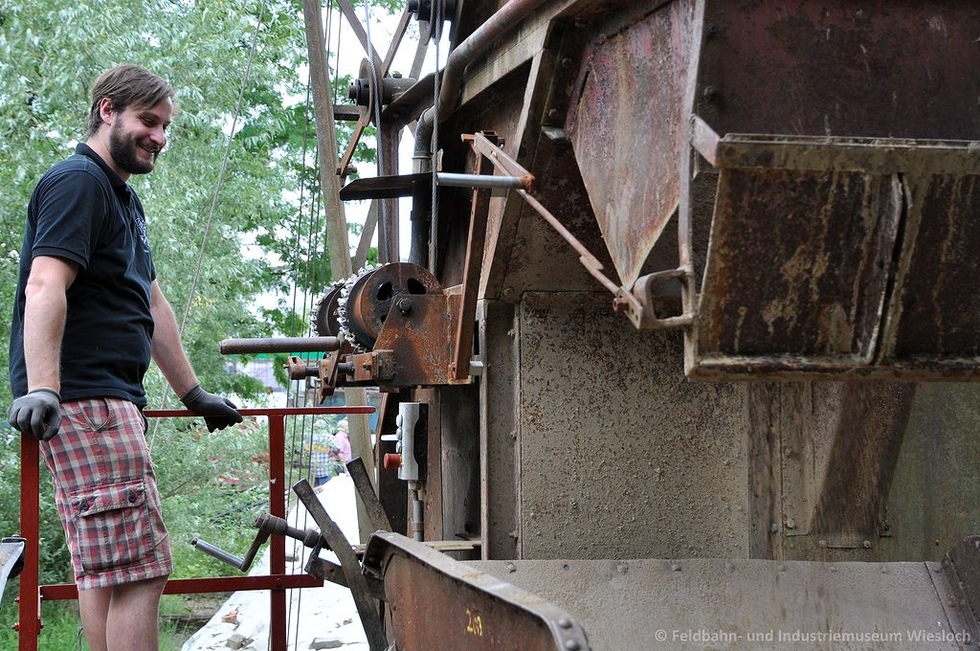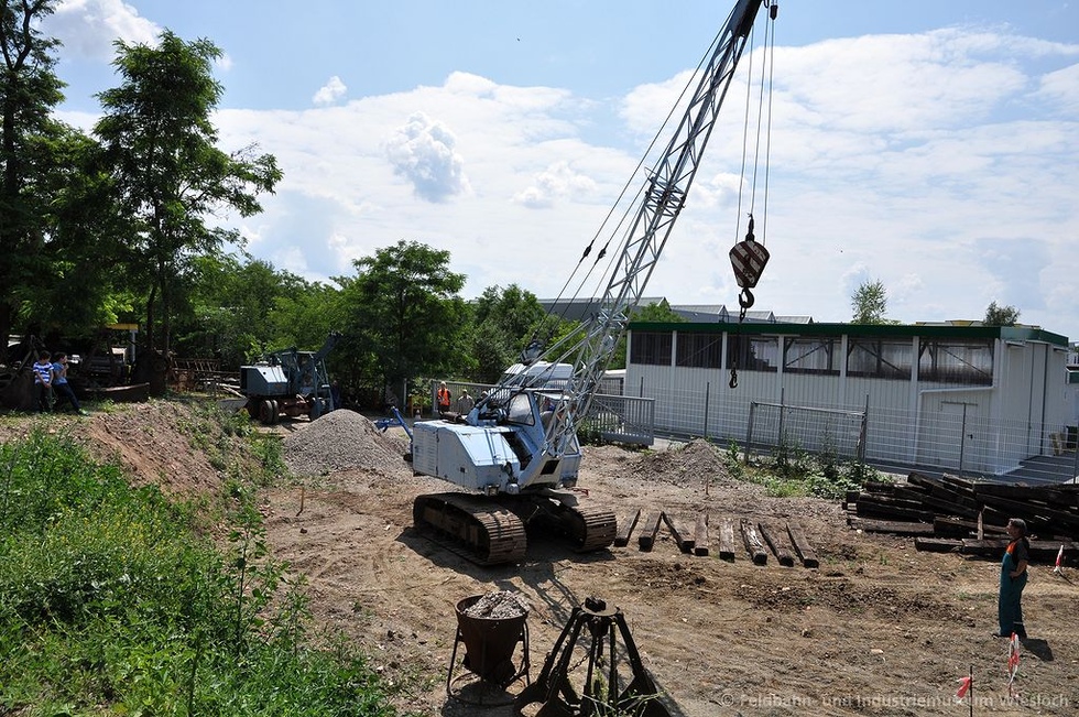 - Eimerkettenbagger Ertmer KB1 beim Abgraben einer "Tongrube" inkl. Verladung auf Kipploren