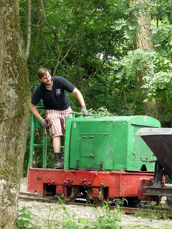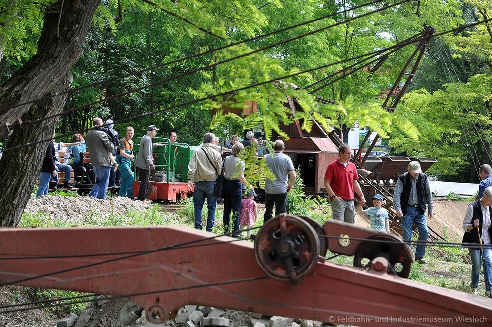 Natürlich war auch unsere Feldbahn mit voll besetzten Besucherzügen auf der Strecke unterwegs, um unsere Gäste direkt zur Vorführung des Eimerkettenbaggers zu transportieren. Die Kinder hatten ihren Spaß im "größten Sandkasten der Region".