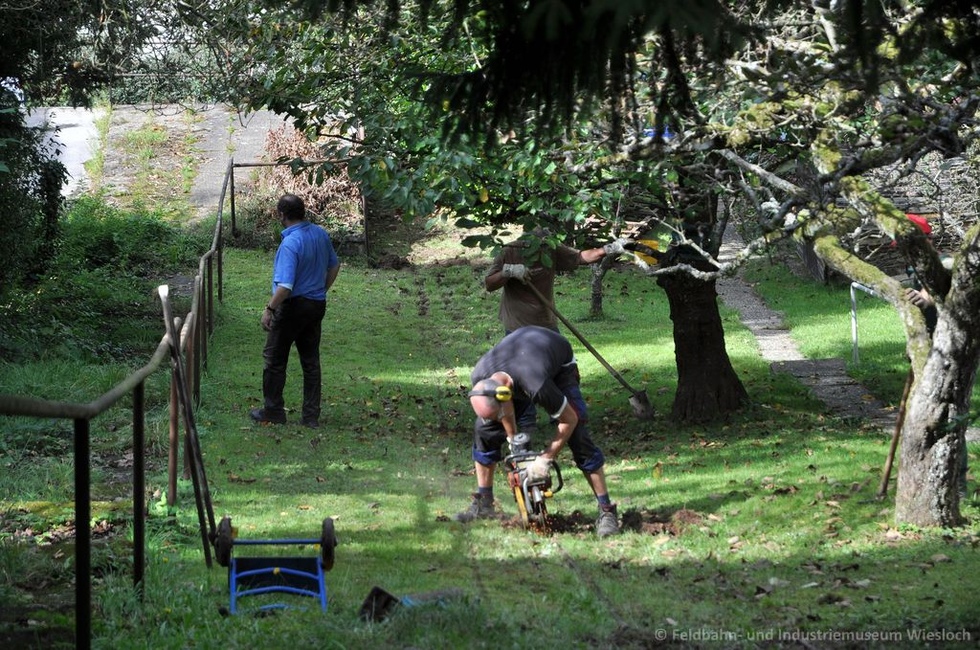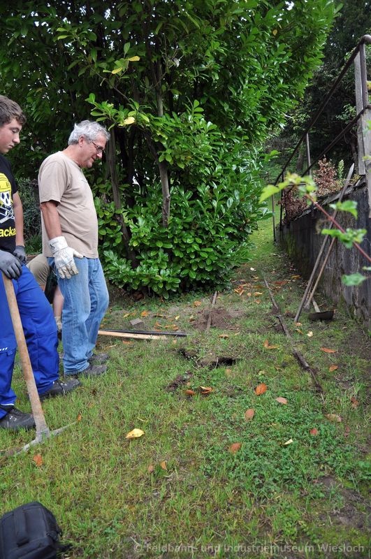 Diesmal konnten wir einen schon stark eingewachsenen Schrägaufzug in Neckargemünd bergen. Der bisherige Besitzer hatte den Aufzug damals benutzt, um auf dem steilen Gelände Kohlen zu seinem Haus zu transportieren. Doch dies ist schon einige Jahre her - seitdem liegt der Aufzug im Dornröschenschlaf. Auf den Bildern kann man teilweise nur erahnen, wo die Gleise liegen. Mit Winde, Stemmeisen und Motorflex konnten wir der Erde die erstaunlich gut erhaltenen Schienen entreißen.