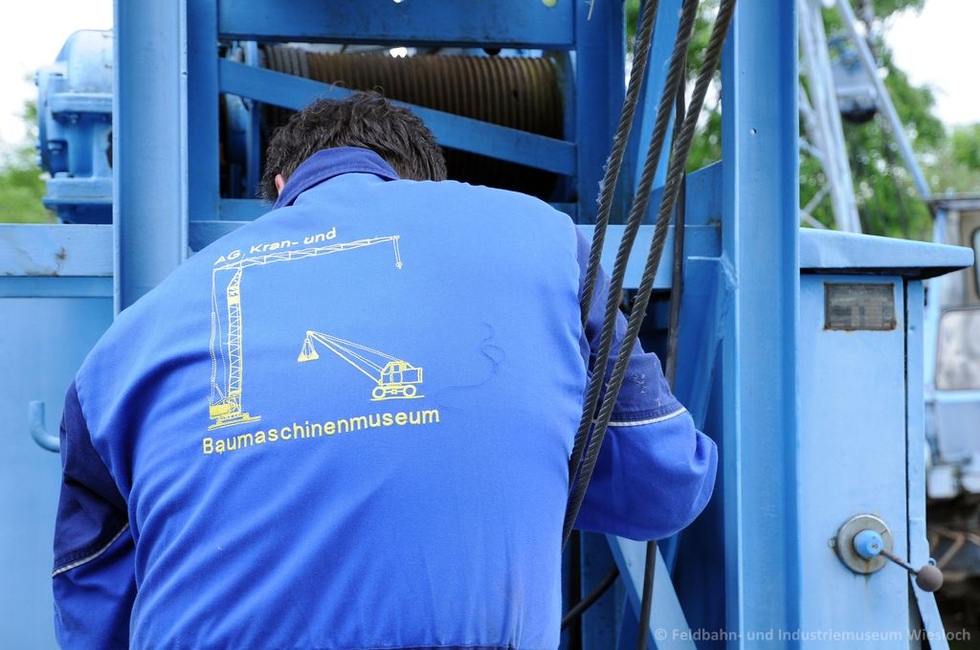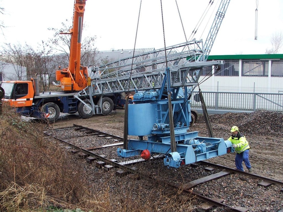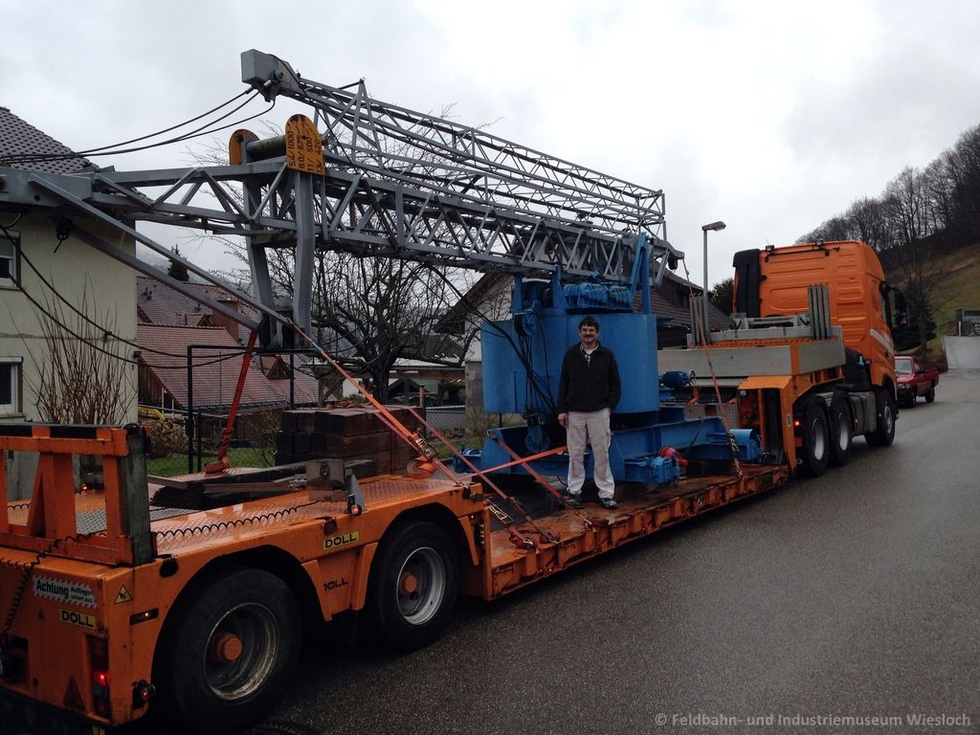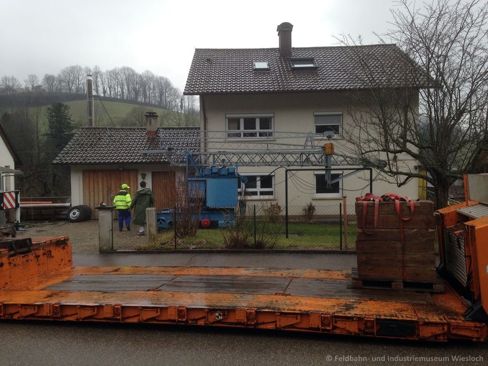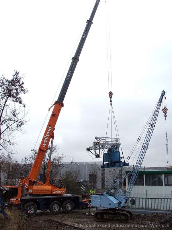 Der Kran stand jahrelang im Vorgarten eines Kran-Enthusiasten und konnte als Dauerleihgabe und in Zusammenarbeit mit der AG Kran- und Baumaschinenmuseum e.V. Rattelsdorf nach Wiesloch geholt werden.