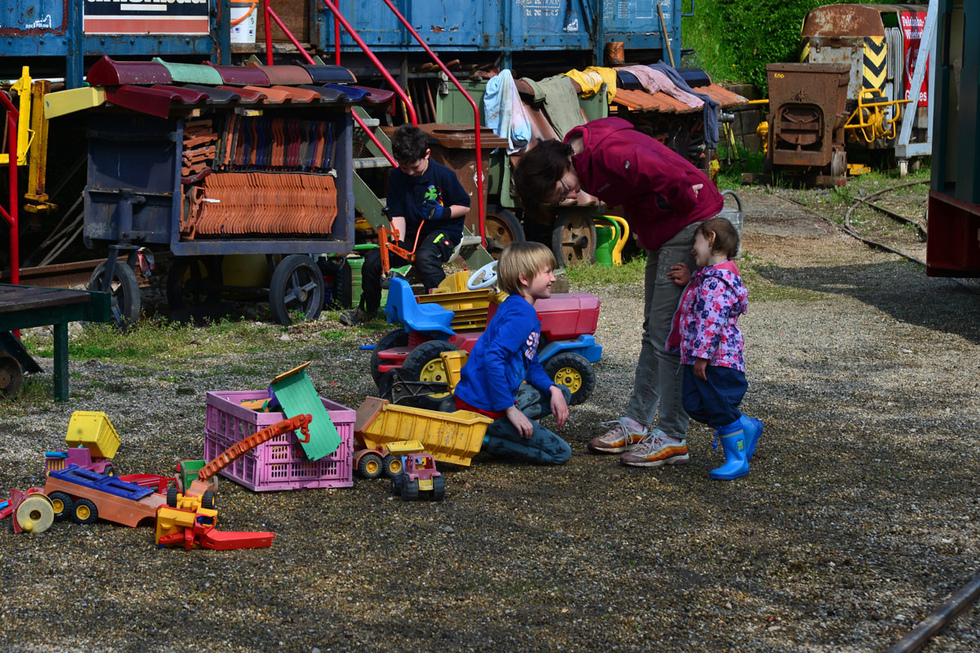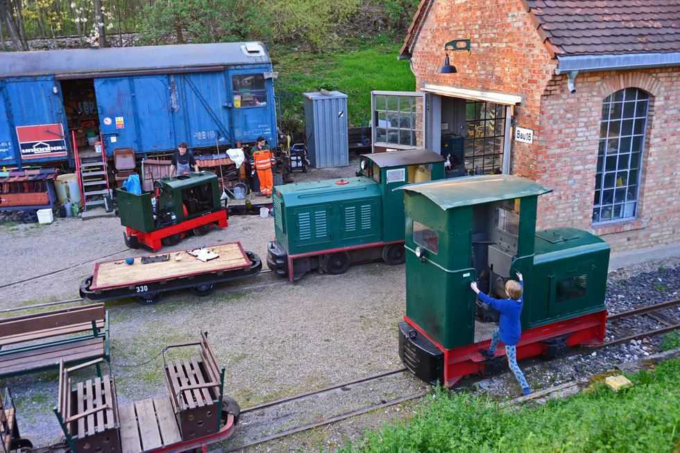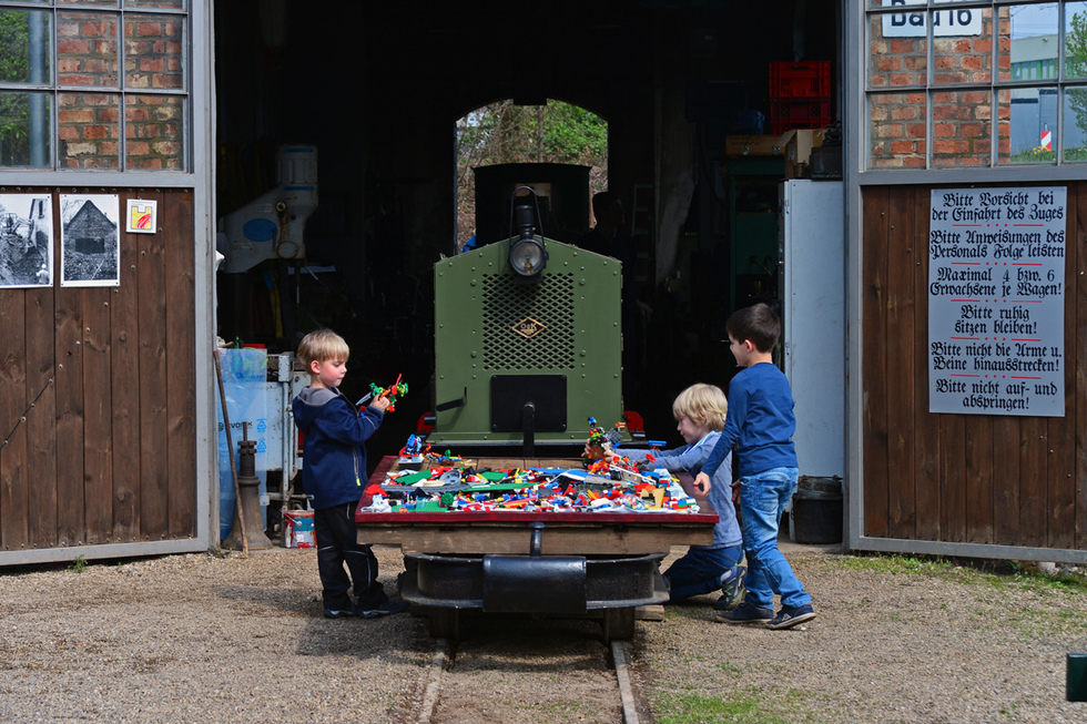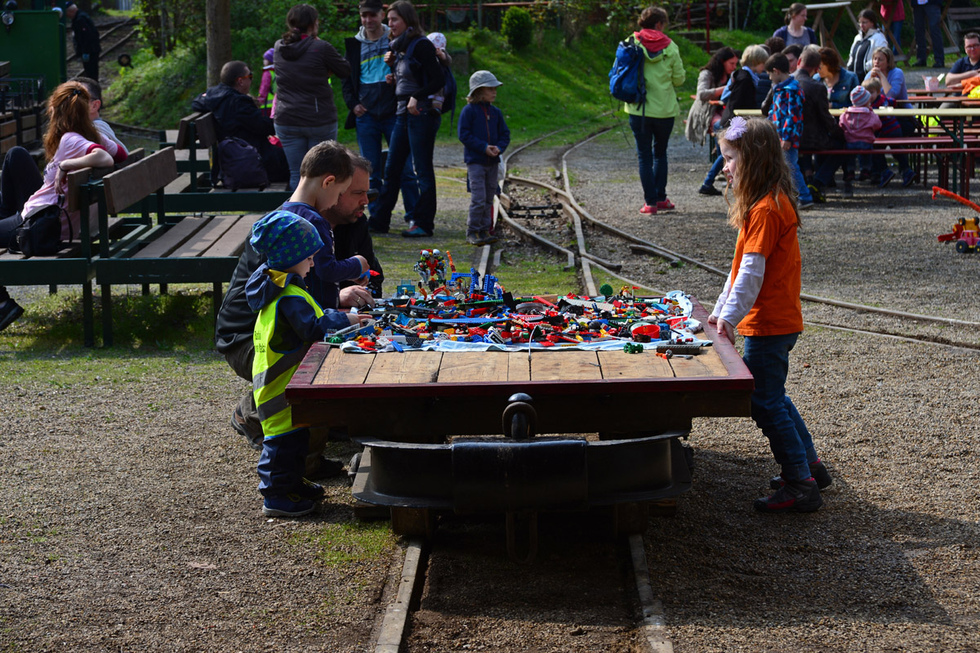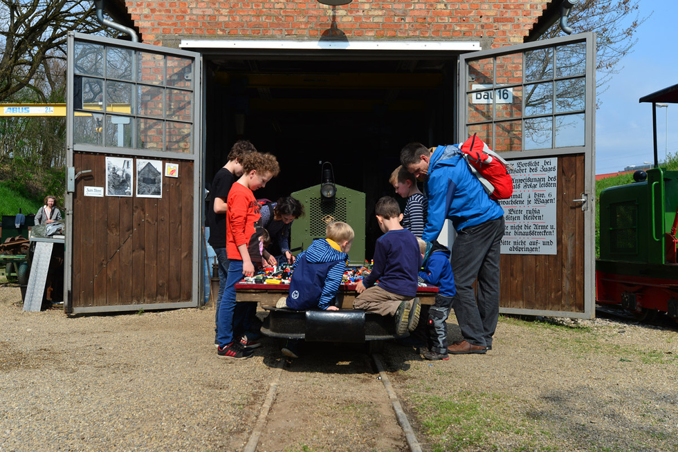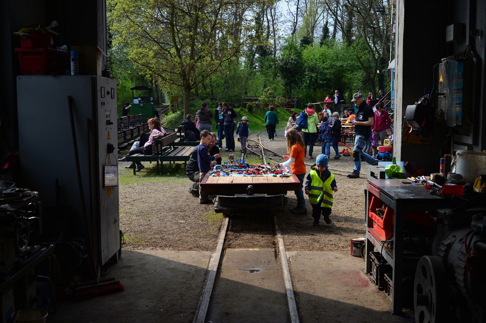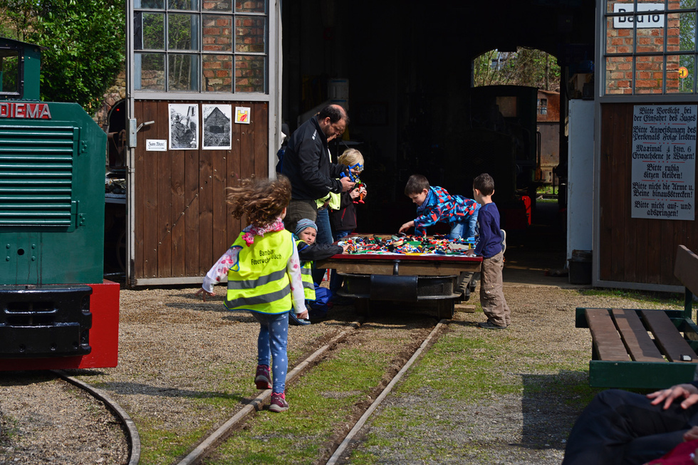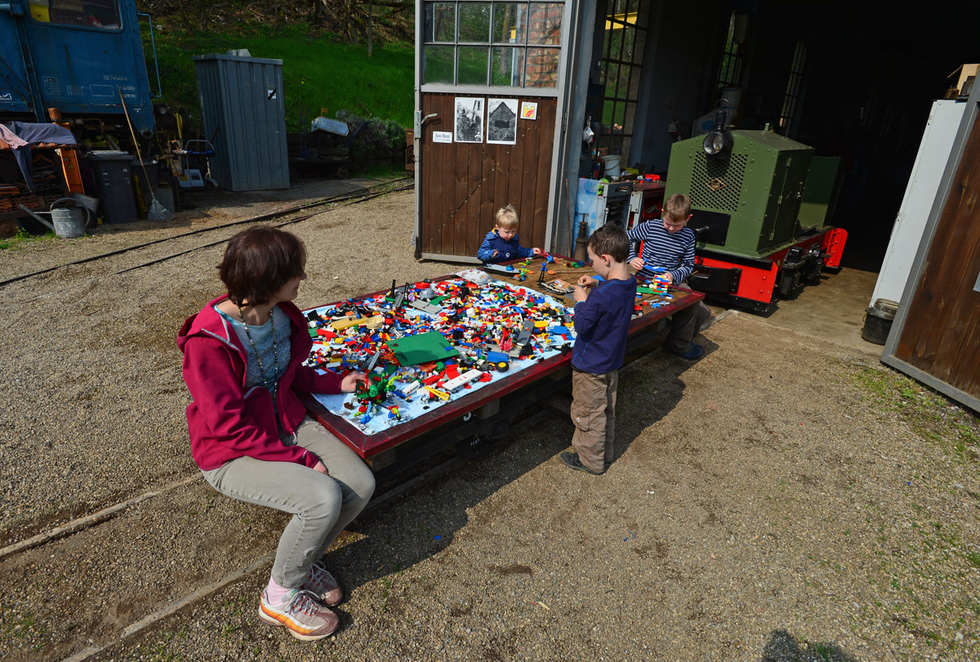 Für den Betriebstag im Frühling - bei allerschönstem angehmem Wetter - hat sich Paul für die Kinder etwas Besonderes ausgedacht. Einige Kilo Lego auf einer Flachlore vor dem Schuppen garantierten intensive Beschäftigung der Kleinen.
