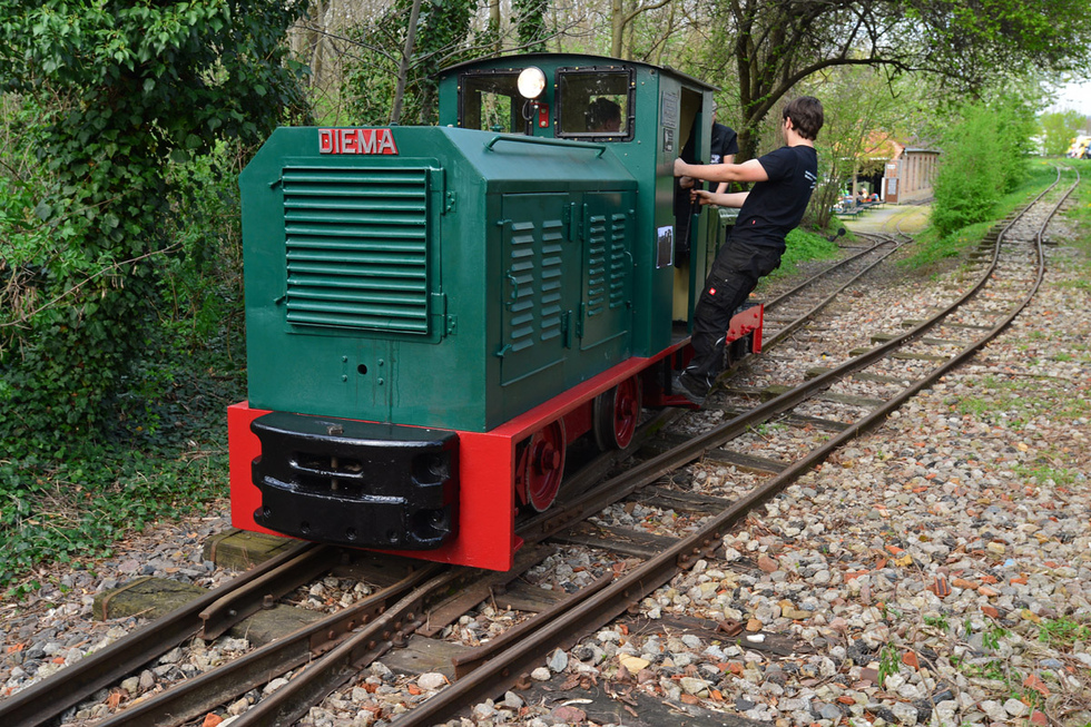 Nach der langen Winterpause konnte sich der Verein wieder seinem Publikum präsentieren. Vor allem die über Winter frisch restaurierte DIEMA DS40 war Mittelpunkt des Interesses. Die Lok kann jedoch noch nicht regulär im Fahrbetrieb eingesetzt werden, da die Räder stark eingelaufen (abgenutzt) sind und erst noch überholt werden müssen.
