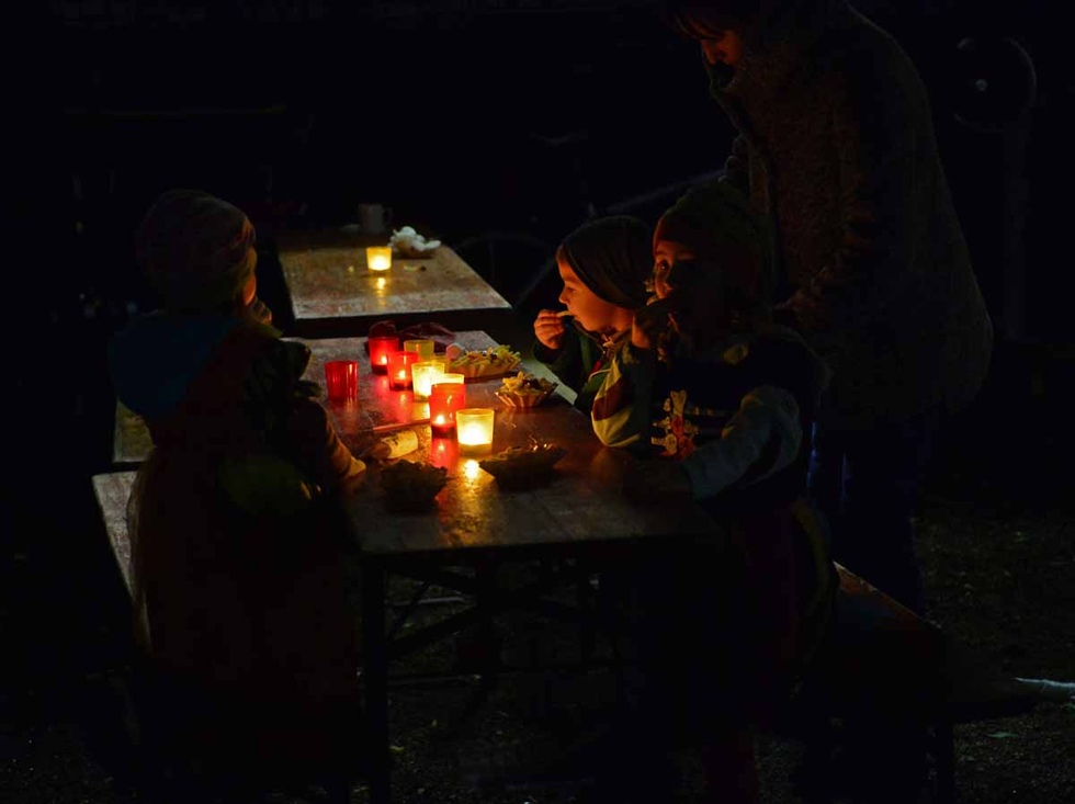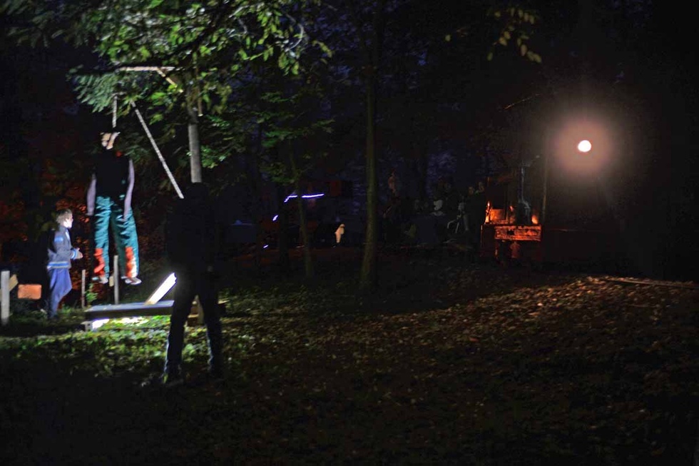 Laternen, Lichter, Lagerfeuer, fliegende Gespenster und Spinnen, Galgenberg und ein nebliger Gruseltunnel gaben dem Schrecken Abwechslung.