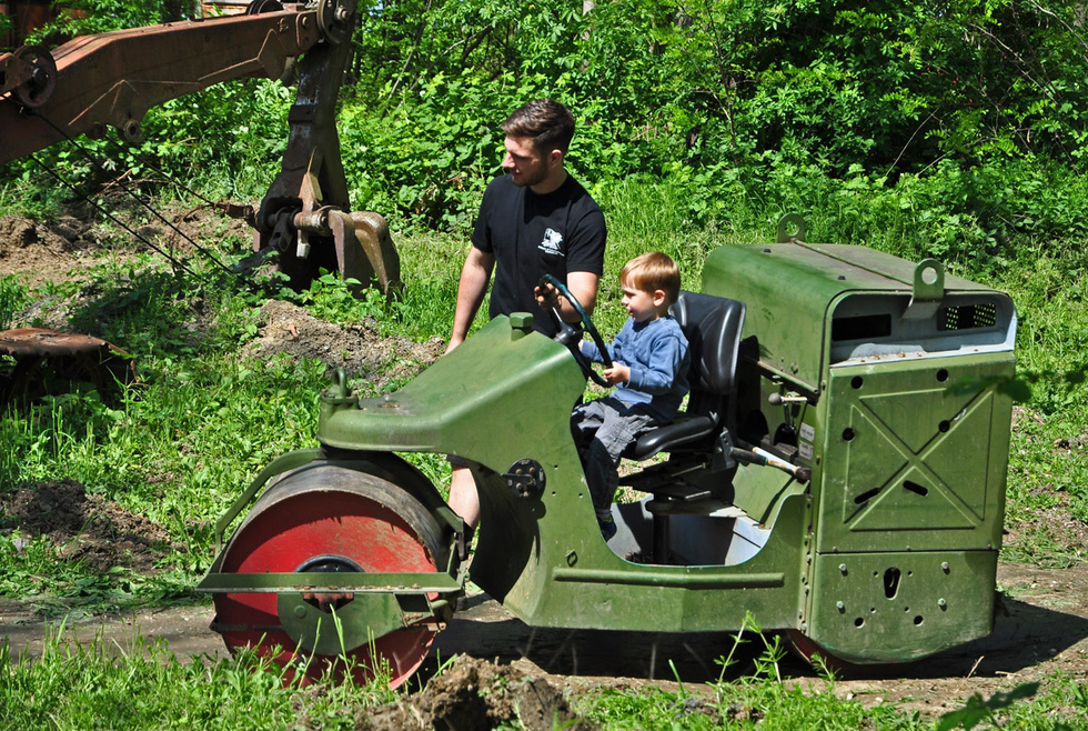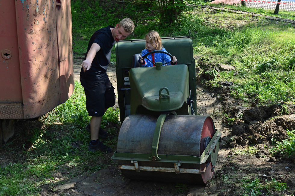 Neu und faszinierend für Kinder war die Straßenwalze, die unter sachkundiger Leitung von ihnen selbst gesteuert werden durfte.