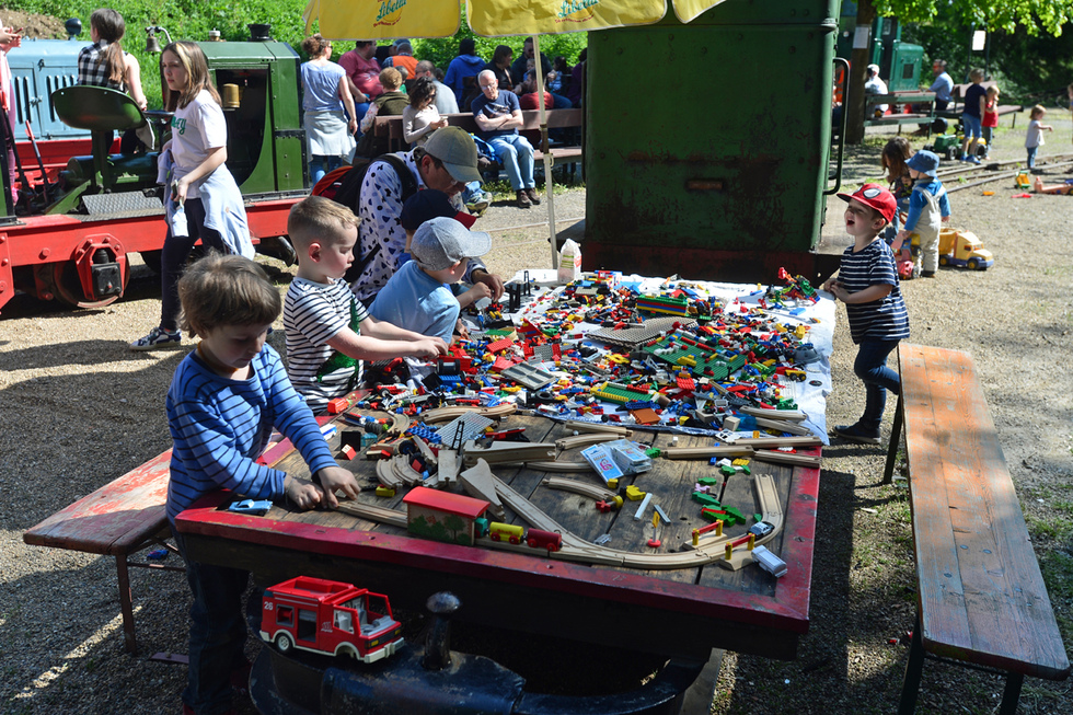 Der Lego-Arbeitsplatz wurde um eine Briobahn erweitert. Ein Angebot, das auch diesmal allergrößtes konzentriertes Interesse fand.