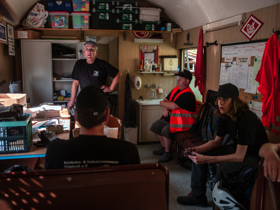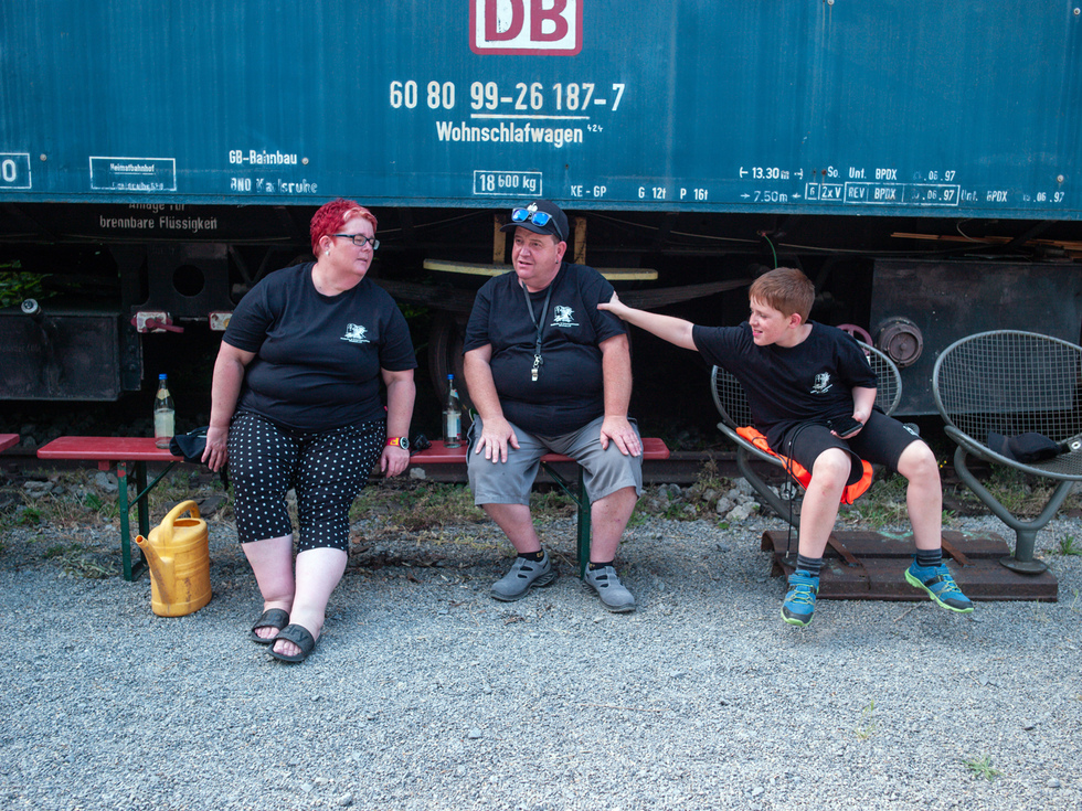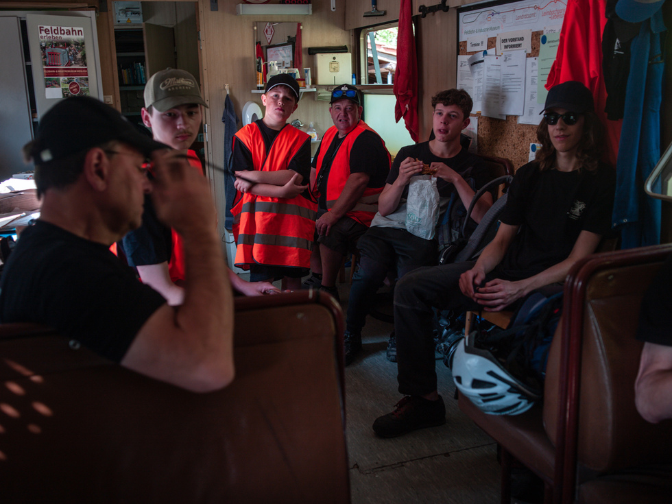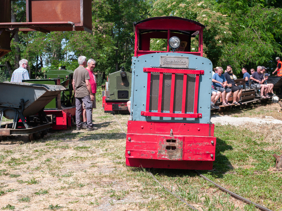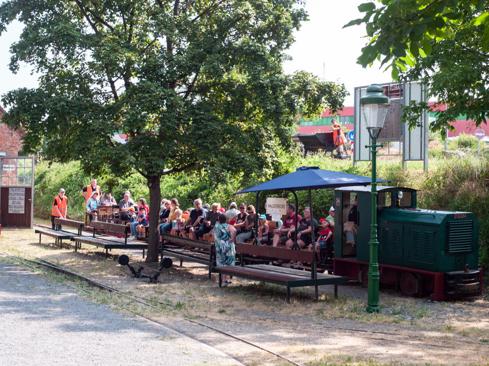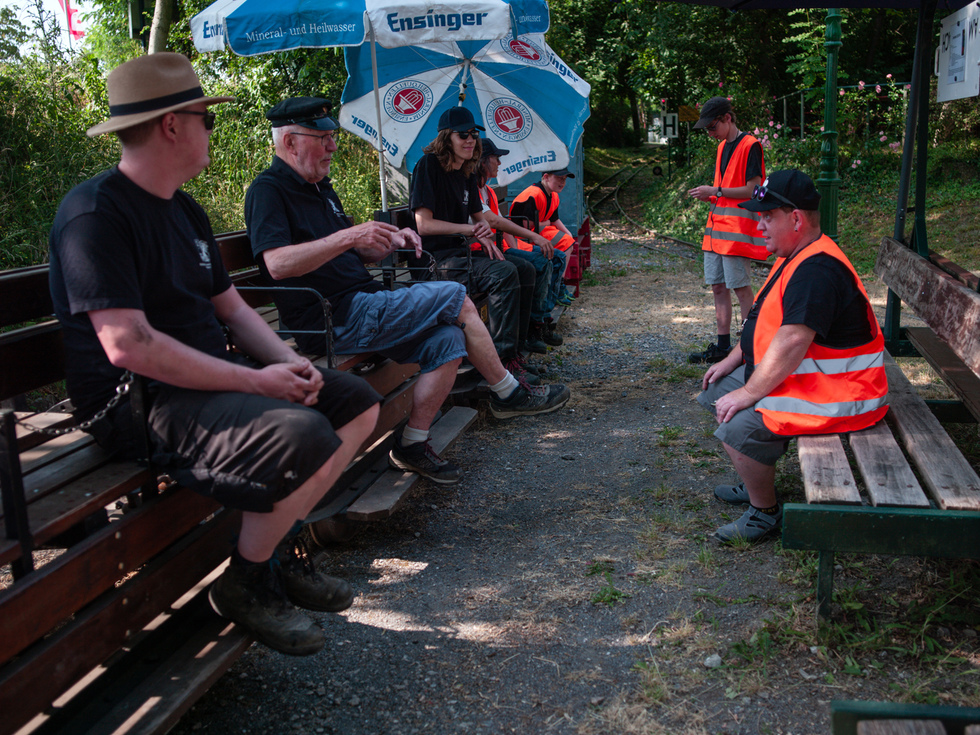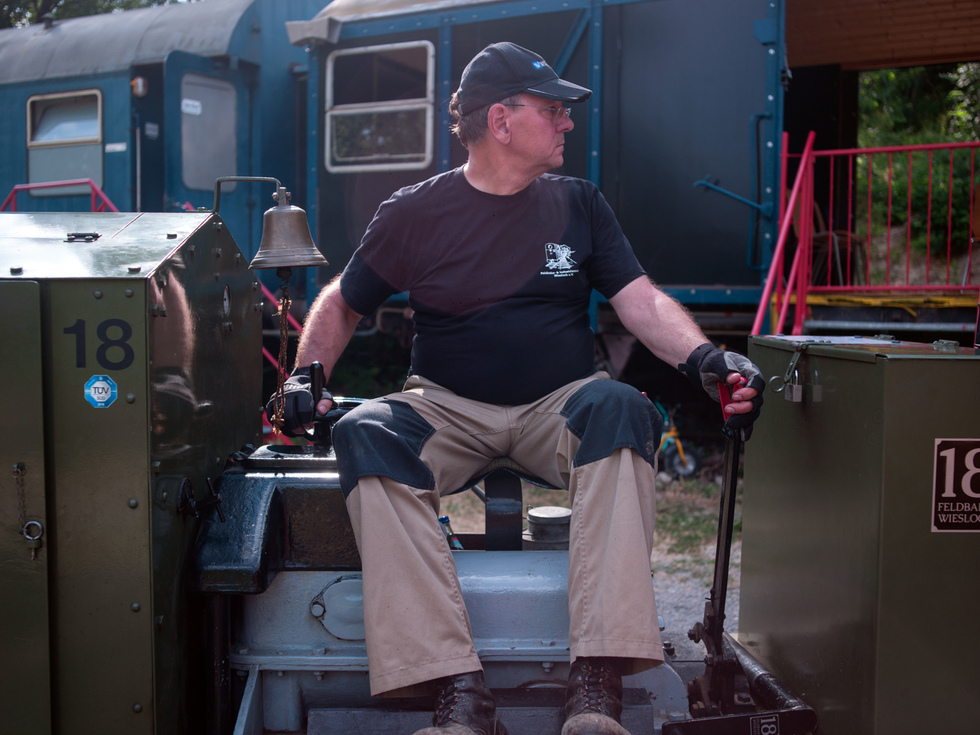 Auf den offenen Personenwagen in den offenen Lokomotiven und im Schatten konnte dieser Tag genossen werden. Auf der Diema-Lokomotive jedoch wurden 50 Grad gemessen und auch die Staßenposten hatten es trotz der Sonnenschirme nicht leicht.