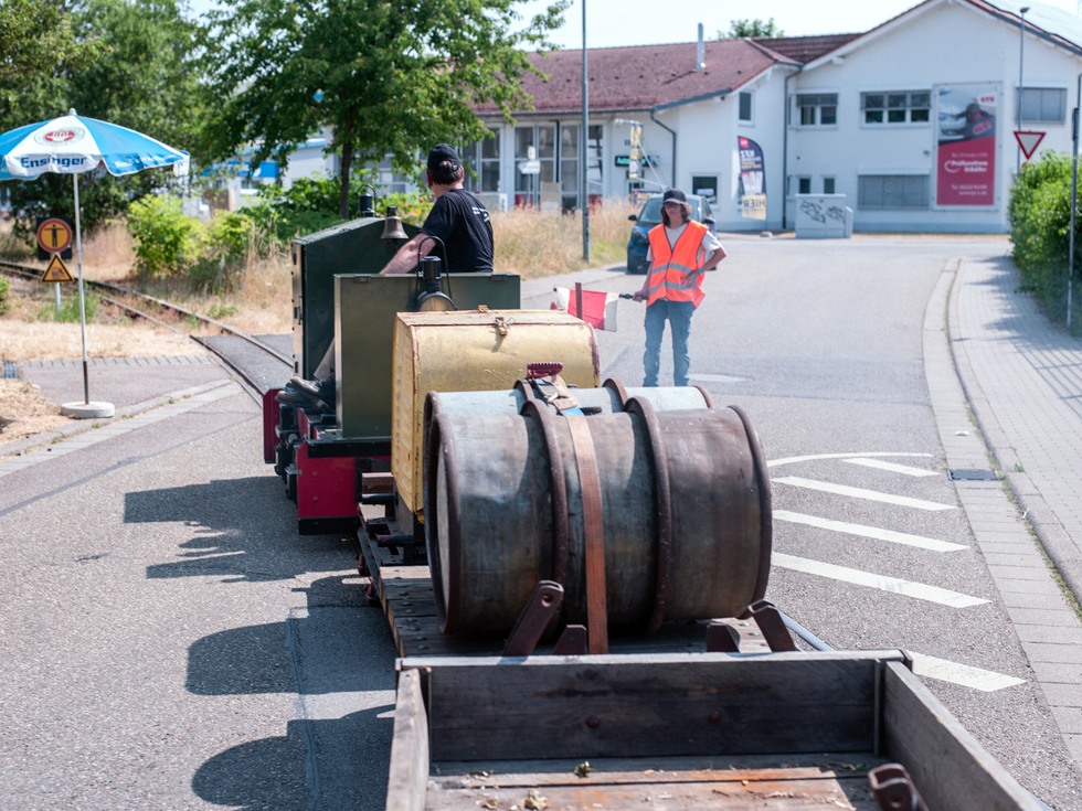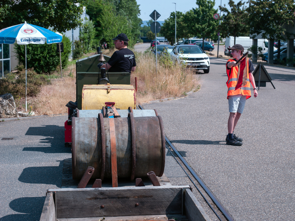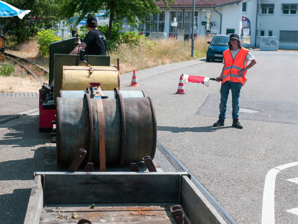 Die Kamera begleitet dann den Güterzug auf der Personenlore über fast die gesamte Strecke und zeigt auch die wichtige Aufgabe der Straßenposten. Die Wieslocher Autofahrer sind ohne Ausnahme stets sehr rücksichtsvoll.