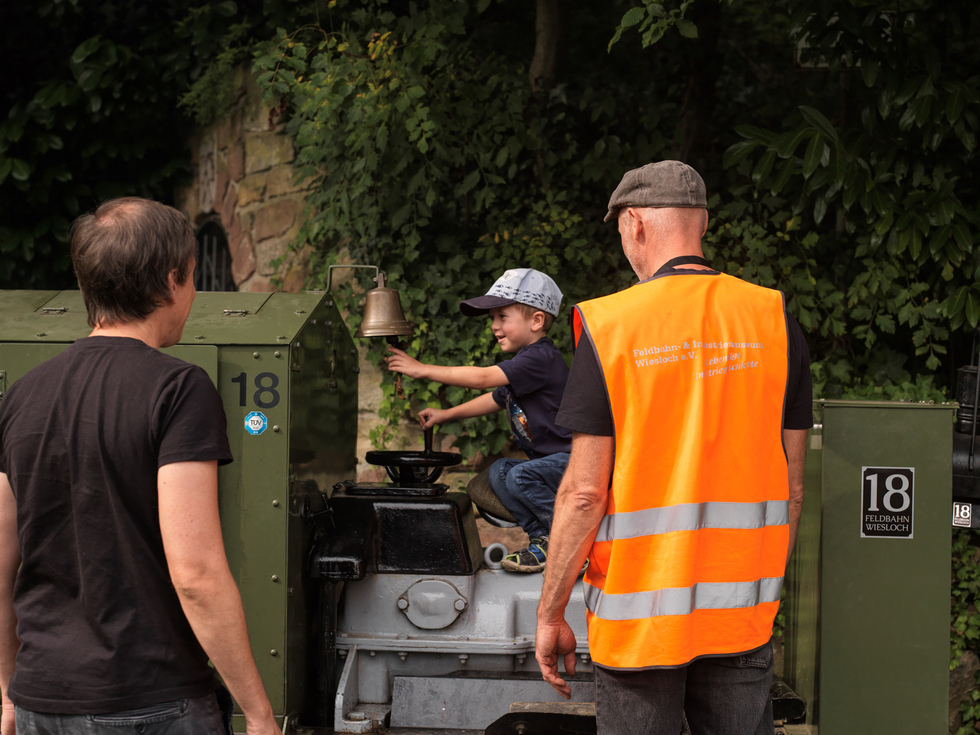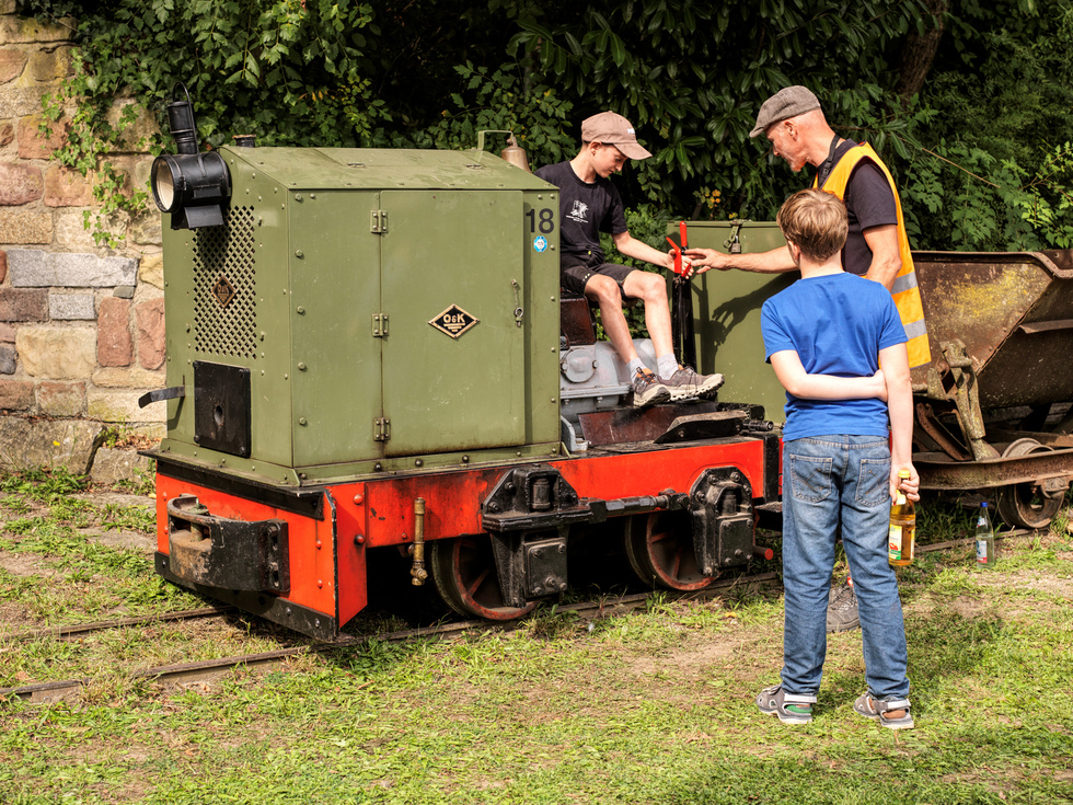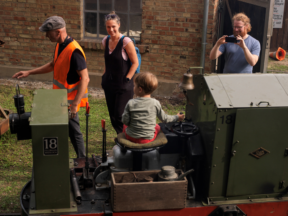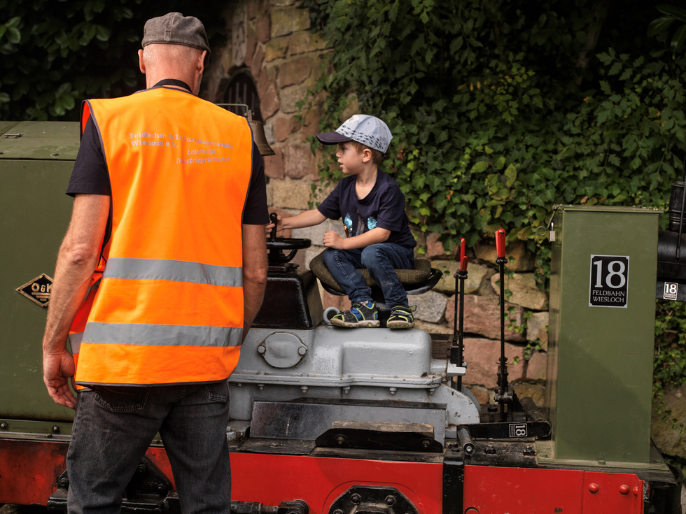 Ein Erlebnis besonderer Art war für einige Kinder und auch Erwachsene einmal selber auf dem Sitz einer Feldbahnlok sitzen zu dürfen und ein Stück vor und zurück zu fahren. Der "Eisenbahnvirus" muss doch irgenwie übertragen werden können.