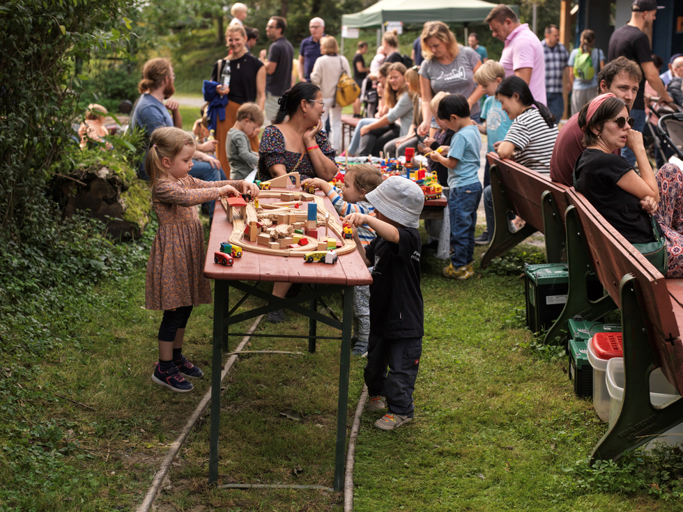Die seit einigen Jahren bei den Kindern sehr beliebte Lego-Lore fand auch diesmal wieder ihre Ergänzung durch die zum Museumsbetrieb passende Holz-Eisen-Bahn.