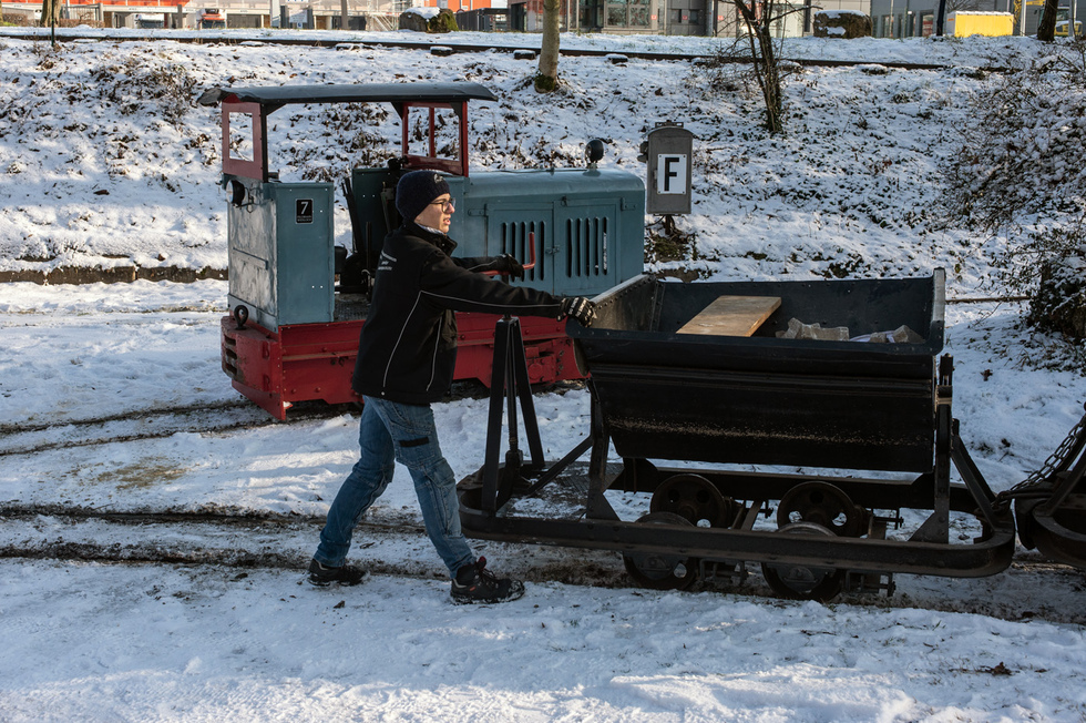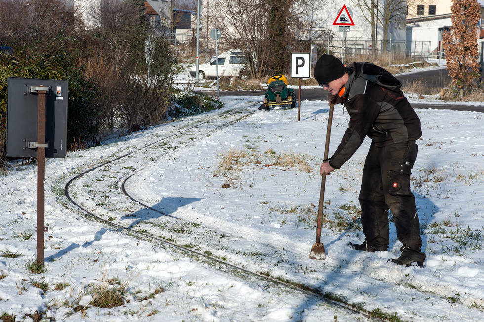 Die Bilder zeigen einige der Schwierigkeiten, mit denen auch so ein kleiner Eisenbahnbetrieb in dieser Jahreszeit fertig werden muss. Neben Schnee- und Eisräumung und Streuen von Sand sollten Testfahrten die Befahrbarkeit der Strecke zeigen.
