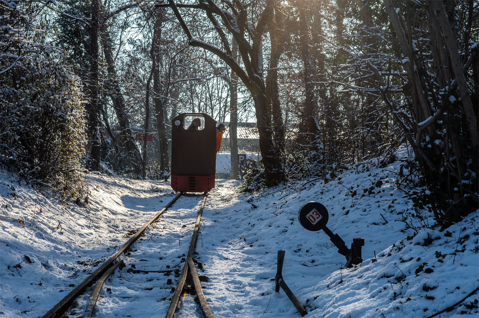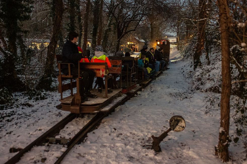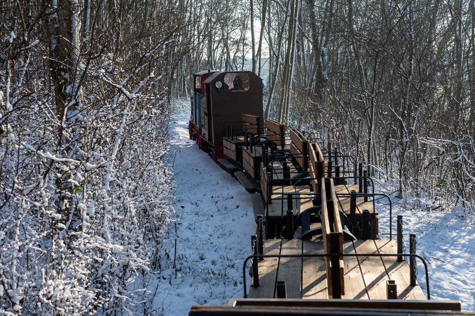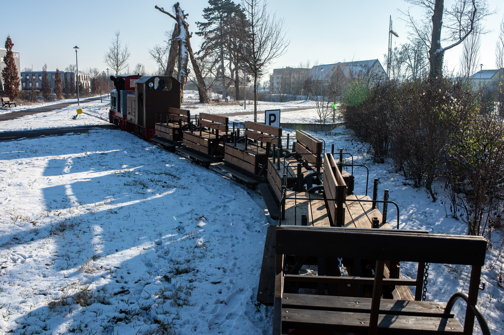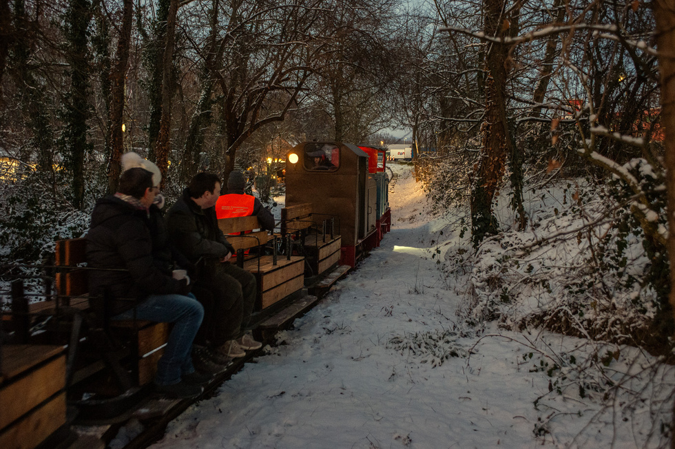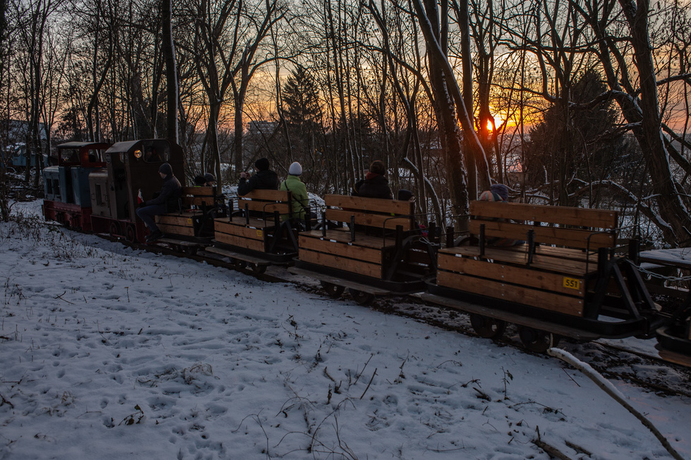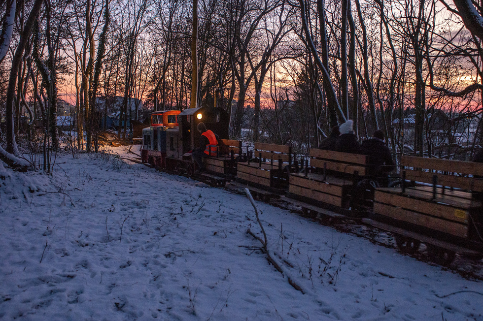 Wer kam, konnte sich an einer schönen weißen Feldbahn-Landschaft mit buntem Sonnenuntergang durch Park und Wald erfreuen.