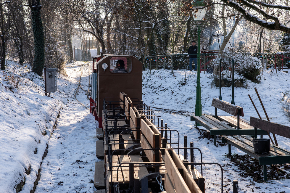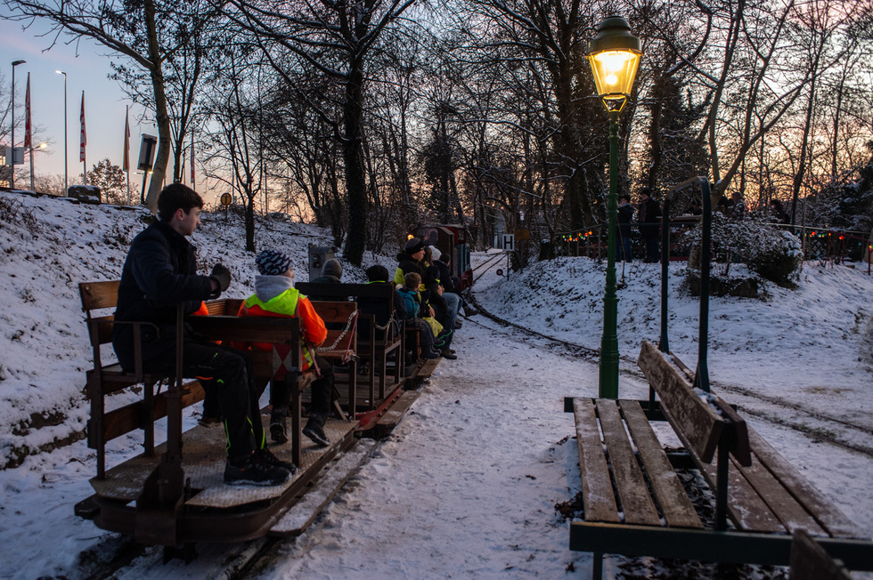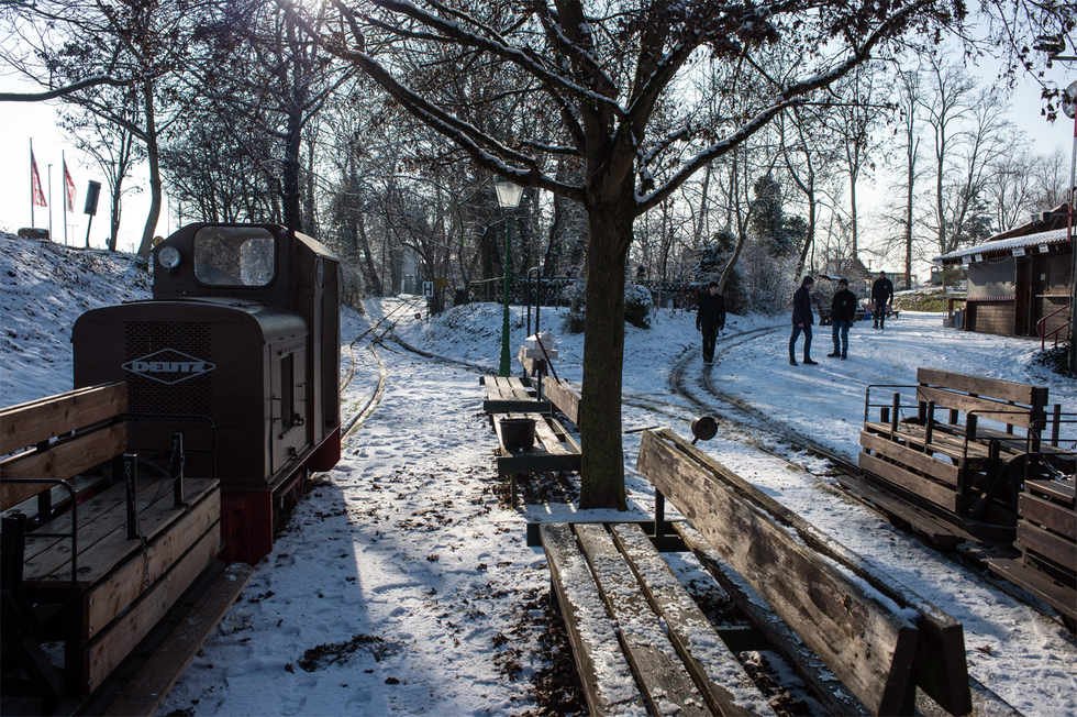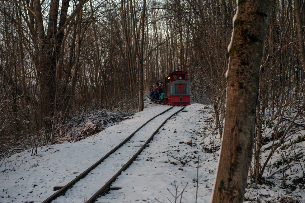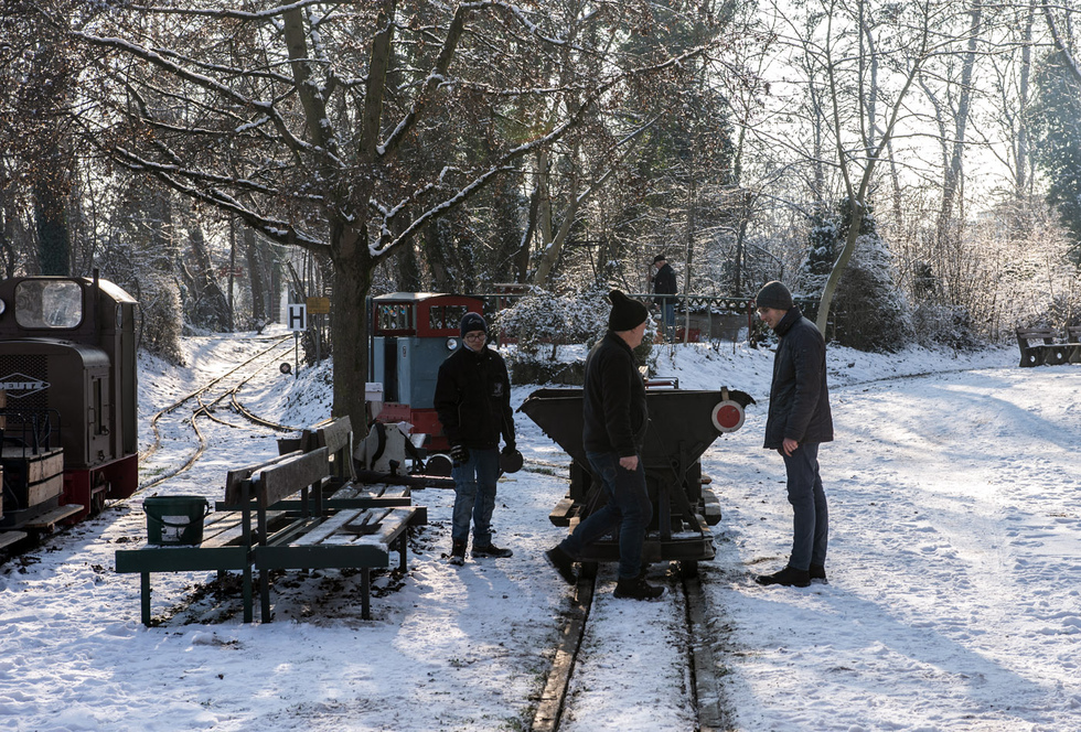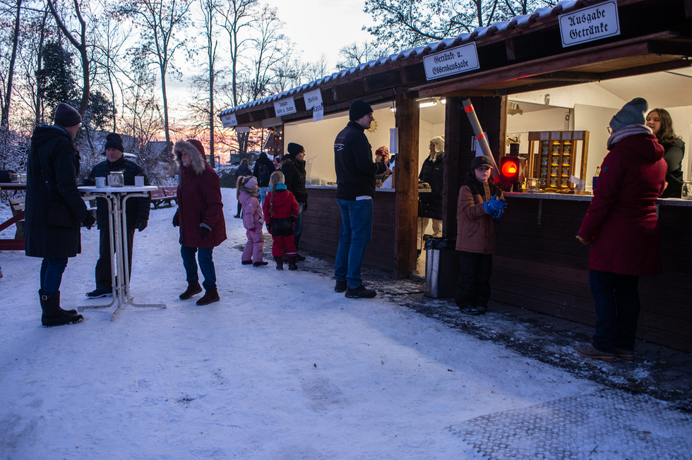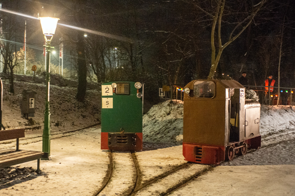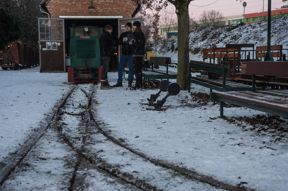 Wer kam, konnte sich an einer schönen weißen Feldbahn-Landschaft mit buntem Sonnenuntergang durch Park und Wald erfreuen.