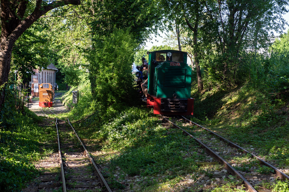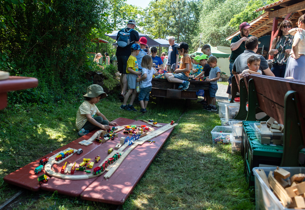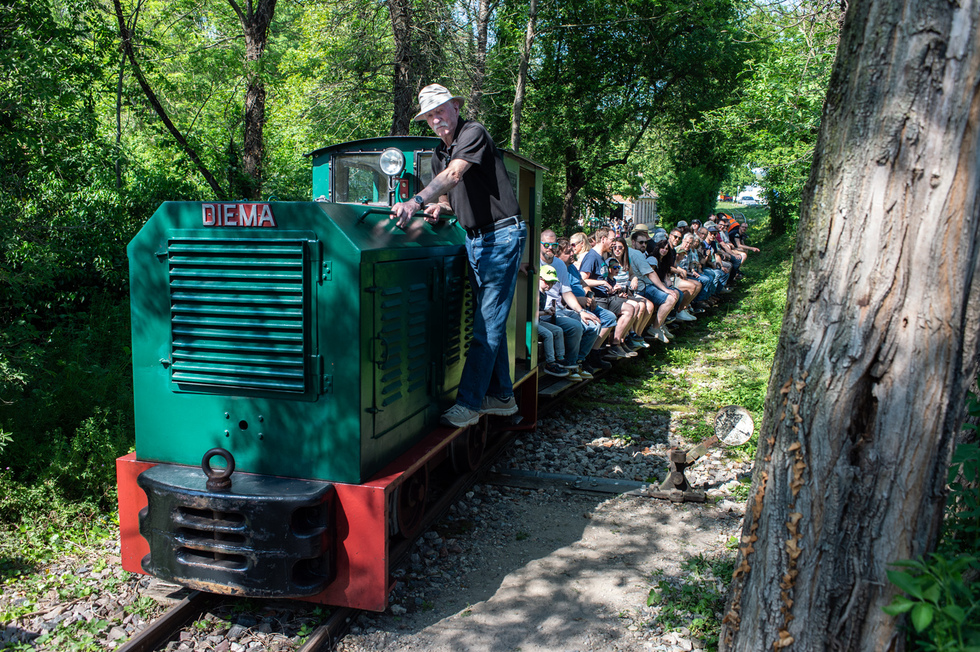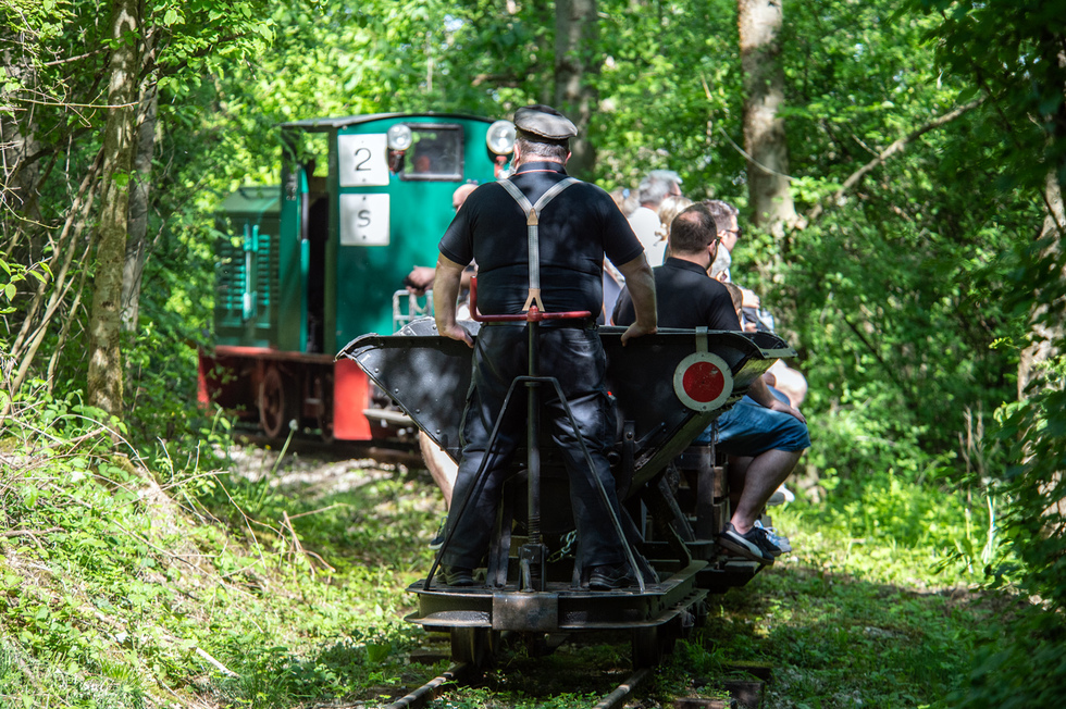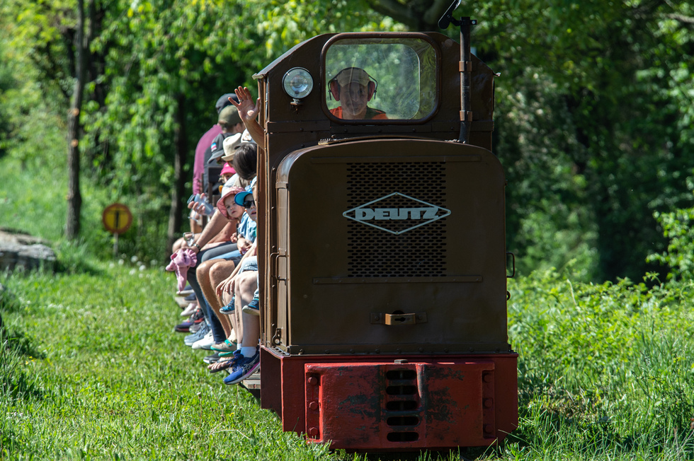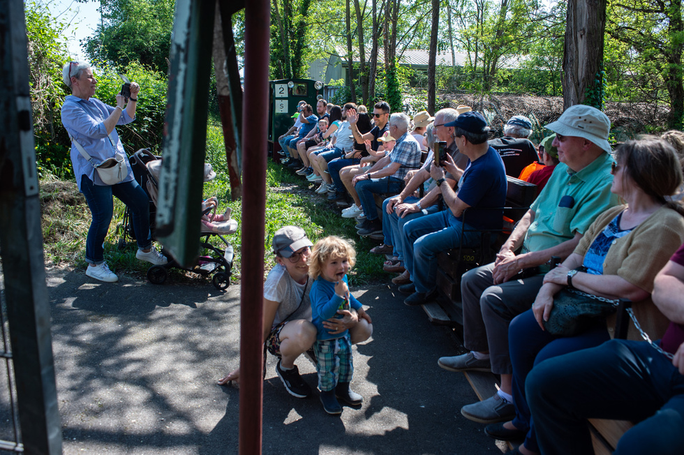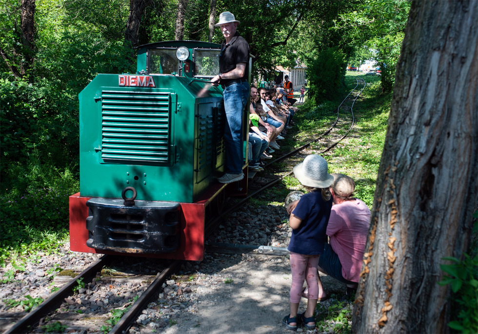 Im Frühjahr wurde die Waldstrecke grundlegend überarbeitet. Auf der Steigungsstrecke parallel zum Leimbach wurden die Gleise entfernt und mit Bagger und Kettenlader viel Erdreich entnommen. Etwa 1,5 m konnte die Trassierung abgesenkt werden, ein kleiner Einschnitt deutet jetzt die erfolgreich abgeschlossenen Arbeiten an. Mit neuen Stahlschwellen und frischen Kleineisen versehen, wurde die neue Trassierung am Maifahrtag befahren. Gerade bei den ersten Fahrten des Tages zeigte es sich, dass selbst bei noch schlüpfrigen Schienen wesentlich gelassener gefahren werden konnte.
