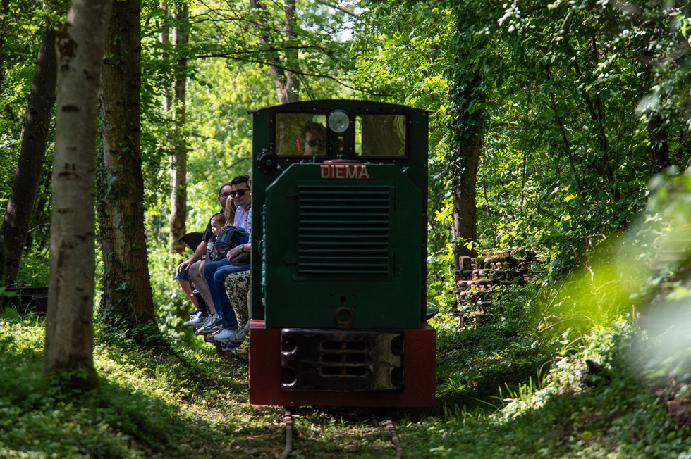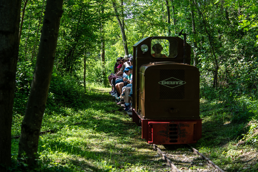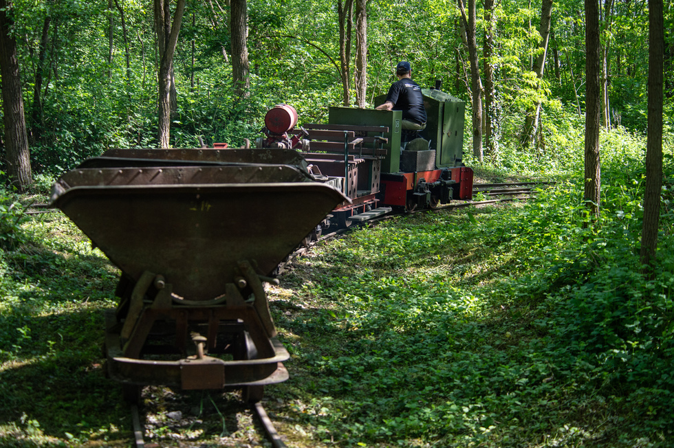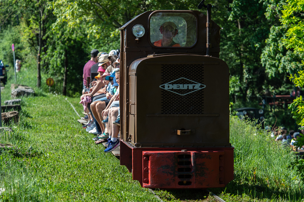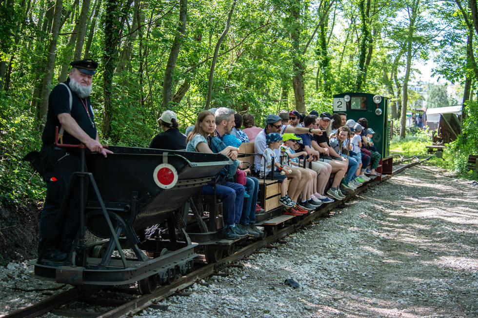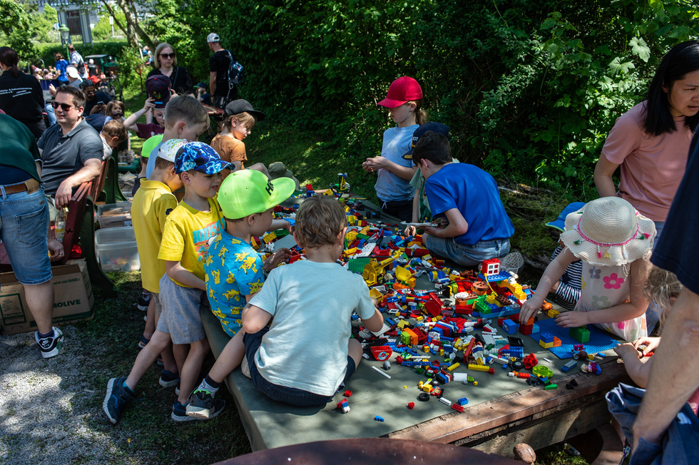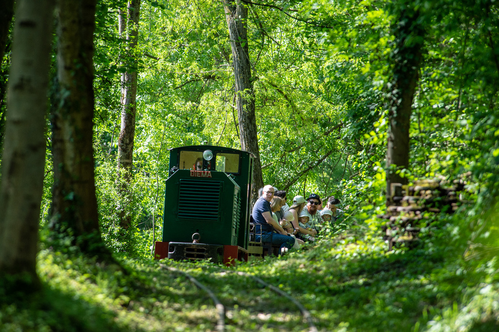 Im Frühjahr wurde die Waldstrecke grundlegend überarbeitet. Auf der Steigungsstrecke parallel zum Leimbach wurden die Gleise entfernt und mit Bagger und Kettenlader viel Erdreich entnommen. Etwa 1,5 m konnte die Trassierung abgesenkt werden, ein kleiner Einschnitt deutet jetzt die erfolgreich abgeschlossenen Arbeiten an. Mit neuen Stahlschwellen und frischen Kleineisen versehen, wurde die neue Trassierung am Maifahrtag befahren. Gerade bei den ersten Fahrten des Tages zeigte es sich, dass selbst bei noch schlüpfrigen Schienen wesentlich gelassener gefahren werden konnte.