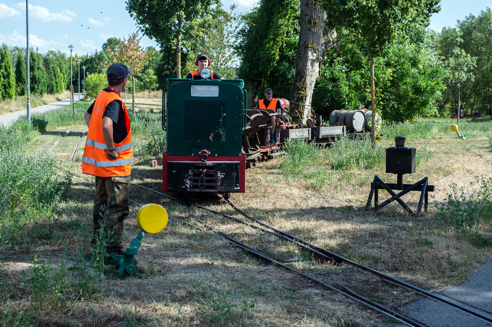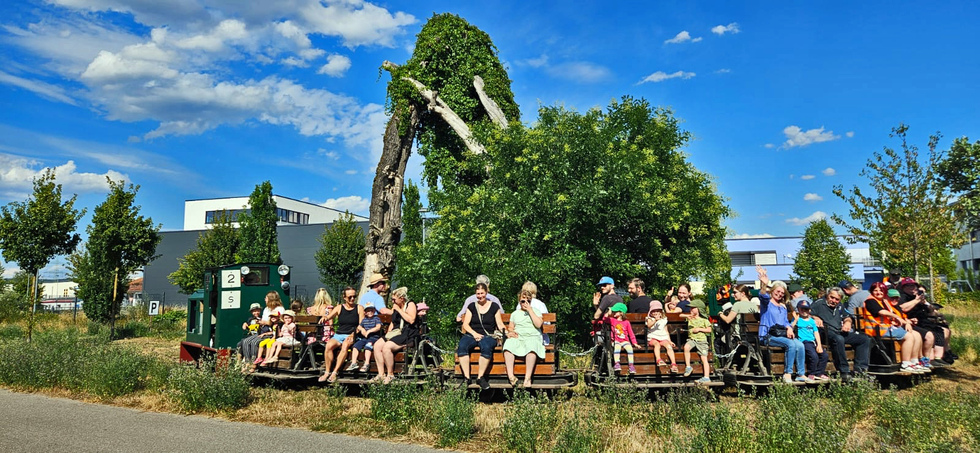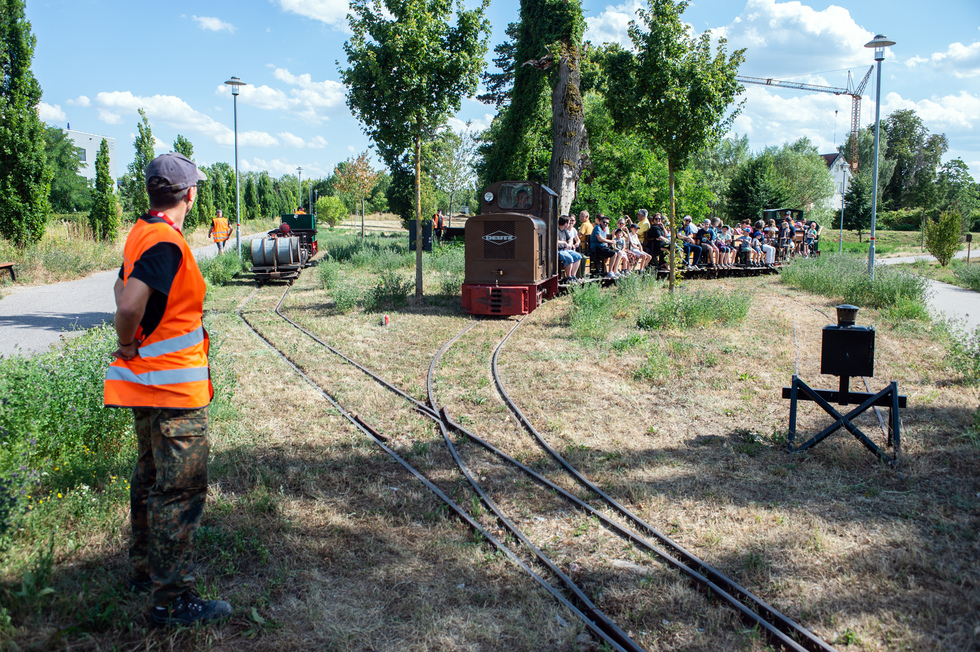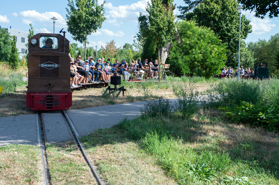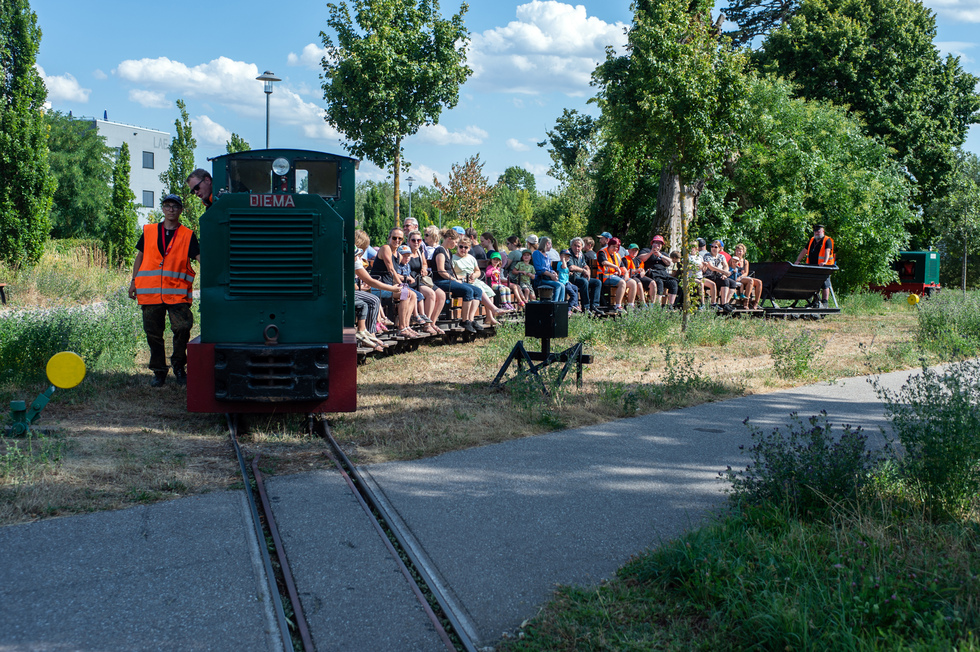 Auch diesmal kamen viele Familien mit großer Zahl an Kindern, die - wie gewohnt die Lego-Lore, Brio-Bahn und diverse Aufsitzfahrzeuge intensiv in Anspruch nahmen. Wegen der sommlich warmen bis sonnig heißen Temperaturen hat sich der jetzige Spielplat im Schatten der Bäume wieder einmal bestens bewährt.
