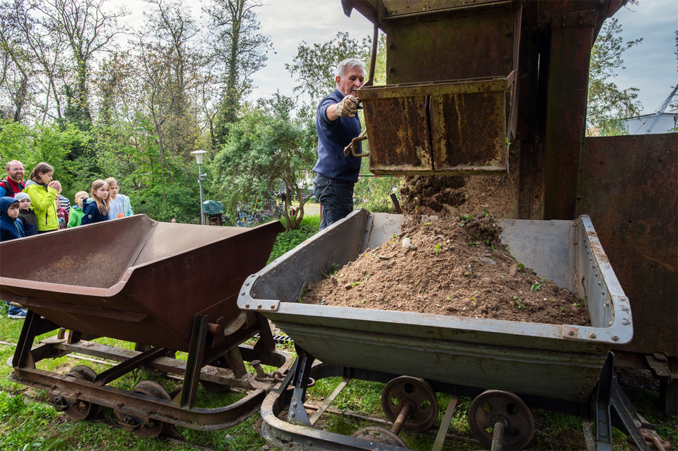 Der Bagger ist einer der letzten bekannten betriebsbereiten Eimerkettenbagger Deutschlands. Bezogen auf das Baujahr ist er wahrscheinlich der Letzte seiner Art. Sogar das Fernsehen (SWR) hat sich schon dafür interessiert.